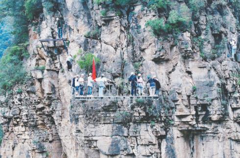 氛圍感拉滿,“中國紅”閃耀峽谷。百家?guī)r廣場上,21米長、14米寬的巨幅五星紅旗由數(shù)萬名游客接力傳遞,眾人齊聲高唱《歌唱祖國》,形成“紅旗漫卷太行山”的壯麗畫卷;紅石峽、小寨溝等景點隨處可見游客手持國旗合影,躍動的“紅”與靜謐的“綠”交織成節(jié)日里最動人的風(fēng)景。