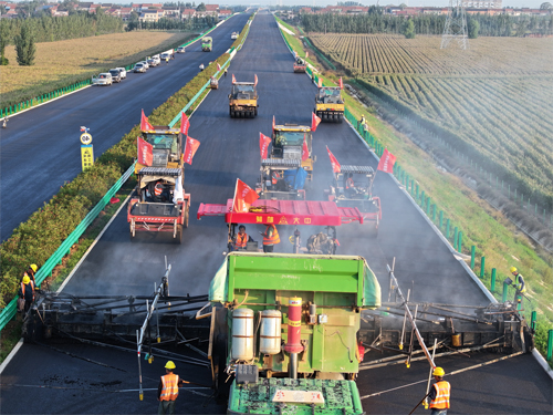 近日,在河南焦作的沁伊高速項目1標段施工現場,數十臺運輸車、壓路機等大型設備轟鳴不斷,快速有序完成攤鋪任務,百余名建設者堅守一線,加速推進瀝青上面層、交安、綠化、機電等建設。北京建工市政路橋項目參建人員放棄休假、堅守崗位,以特別的“在崗”奉獻為國慶獻禮,奮力沖刺年底通車總目標。