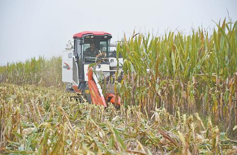 10月11日,孟州市河雍街道小宋莊村,農(nóng)機(jī)手駕駛著農(nóng)機(jī)在玉米田間進(jìn)行收割作業(yè)。為應(yīng)對不利天氣影響,孟州市及時調(diào)運適用農(nóng)機(jī)具,利用降雨間歇盡快搶收搶烘,確保秋糧應(yīng)收盡收。