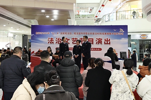 “焦作市2025年12・4 國家憲法日、憲法宣傳周暨全民普法40年成果展”集中宣傳活動現(xiàn)場,市民在觀看法治文藝節(jié)目演出。