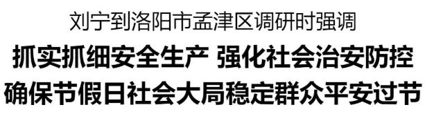 10月1日下午,省委書記劉寧到洛陽市孟津區(qū),調(diào)研節(jié)日期間安全生產(chǎn)、社會治安等工作。