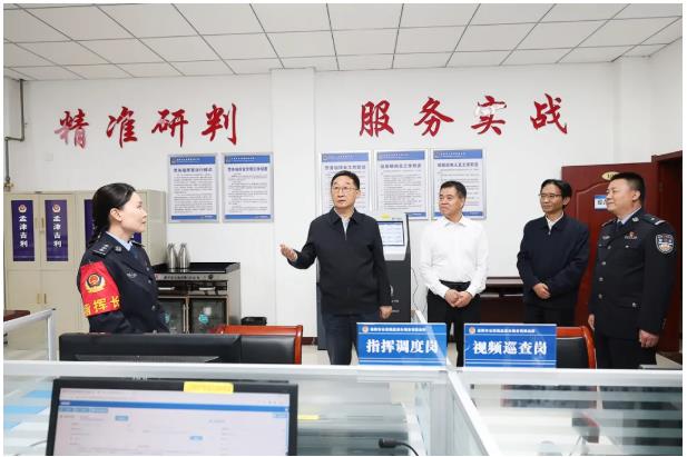 洛陽市公安局孟津分局吉利派出所下轄4個社區(qū)、19個行政村,人口流動量大,規(guī)上企業(yè)較多。劉寧察看綜合指揮室,親切慰問堅守一線的基層民警。“習(xí)近平總書記在河南考察時指出,要盯牢風(fēng)險隱患排查和治理,強化社會治安整體防控,有效防范化解重點領(lǐng)域風(fēng)險,切實維護(hù)社會和諧穩(wěn)定。”劉寧說,公安干警要踐行“對黨忠誠、服務(wù)人民、執(zhí)法公正、紀(jì)律嚴(yán)明”總要求,堅持和發(fā)展新時代“楓橋經(jīng)驗”,以提高人民群眾安全感和滿意度為目標(biāo),完善立體化社會治安防控體系,加強社會面治安巡邏防控,提高見警率和接處警速度,依法懲治各類違法犯罪活動,提升維護(hù)公共安全能力水平。