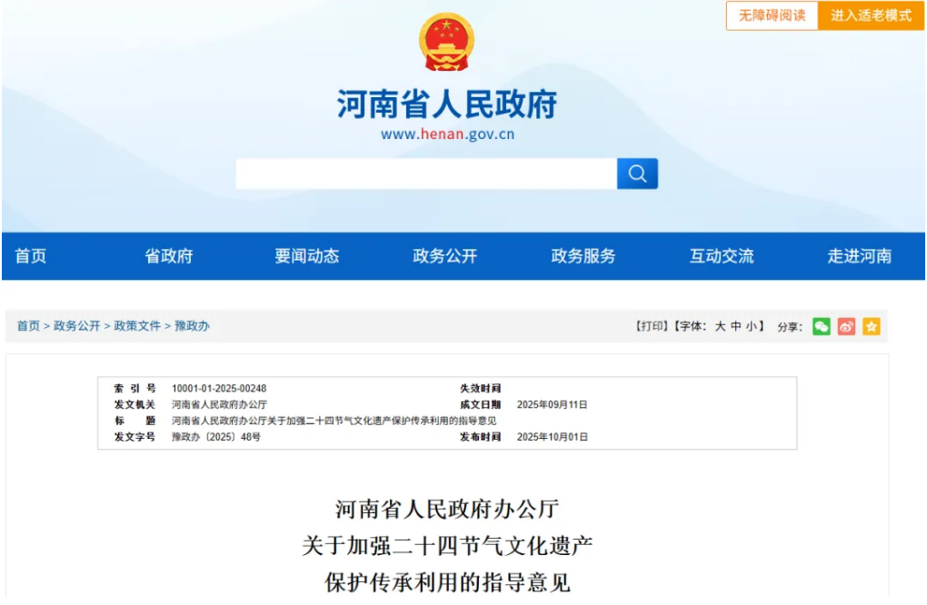 為加強二十四節氣文化遺產保護傳承利用,深化中華文明交流互鑒,推動節氣文化繁榮興盛,加快建設文旅強省,經省政府同意,現提出以下指導意見,請認真貫徹落實。