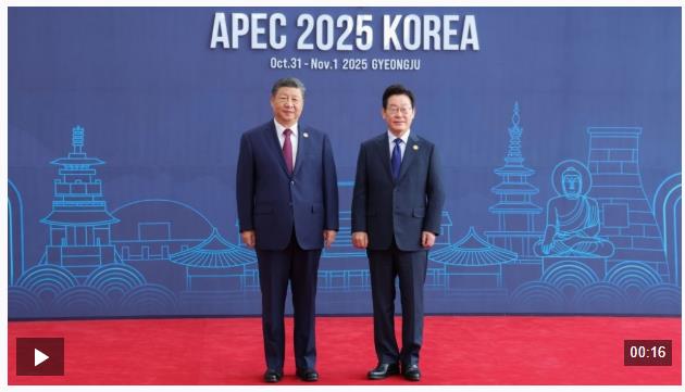 獨(dú)家視頻丨習(xí)近平同韓國總統(tǒng)李在明握手合影