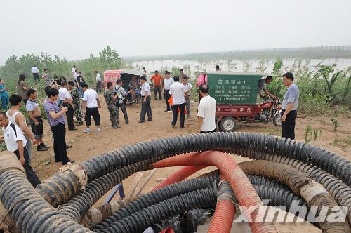 7月5日,救援人員在黃河灘區(qū)漫灘地段待命。新華社記者 趙鵬 攝