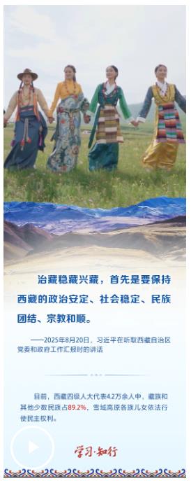 2025年8月20日,習近平總書記率中央代表團乘專機抵達拉薩,出席西藏自治區成立60周年慶;顒印T诼犎∥鞑刈灾螀^黨委和政府工作匯報時,習近平總書記強調,“持續深入抓好穩定、發展、生態、強邊四件大事,努力建設團結富裕文明和諧美麗的社會主義現代化新西藏”。