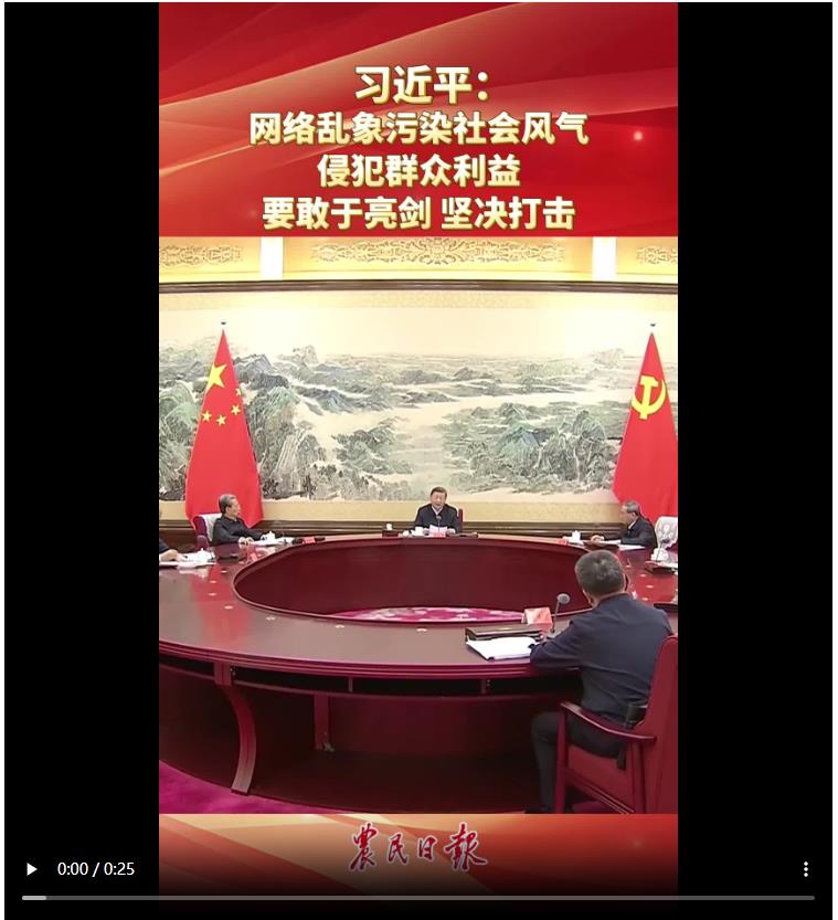 習近平:網絡亂象污染社會風氣 侵犯群眾利益 要敢于亮劍 堅決打擊