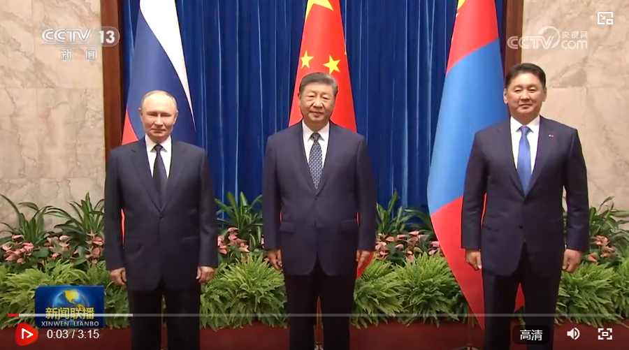習(xí)近平指出,近年來,中俄蒙三方合作穩(wěn)步發(fā)展,取得實(shí)實(shí)在在的成果。三方合作中期路線圖順利實(shí)施,三國貿(mào)易額節(jié)節(jié)攀升,經(jīng)貿(mào)、科技、生態(tài)保護(hù)、人文合作不斷深化。作為山水相連、休戚與共的友好鄰邦,中方愿同俄方、蒙方一道,堅(jiān)守合作初心,排除外部干擾,攜手推動(dòng)三方合作高質(zhì)量發(fā)展。