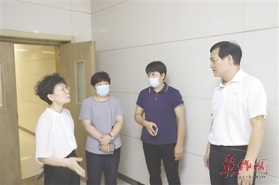 焦作同仁醫院理事長姜玉霞(左一)在指導醫院防汛工作。